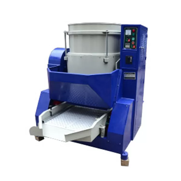 The mobile finishing machine uses the centrifugal force generated by the high-speed rotation of the bottom rotary disc to cause strong friction between the workpiece and the abrasive under the action of the fixed groove, forming a spiral eddy current movement, so that the workpiece and the abrasive produce high-speed rotation and spiral turning motion. Therefore, the processed parts can achieve the desired effect in a short time.